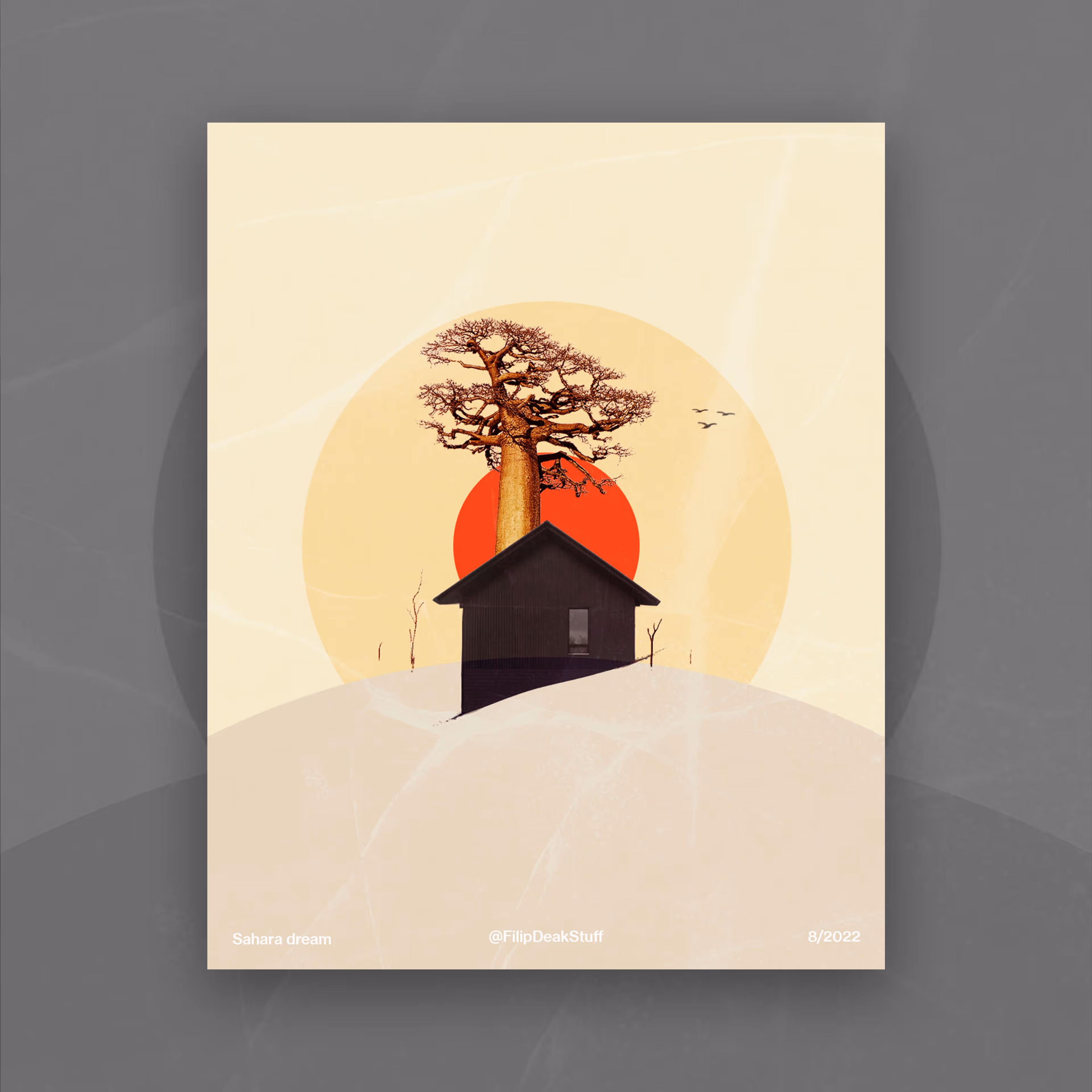 Once I dreamed of a cottage somewhere in the African desert. It looked surreal but beautiful, so I decided to recreate it when I woke up.