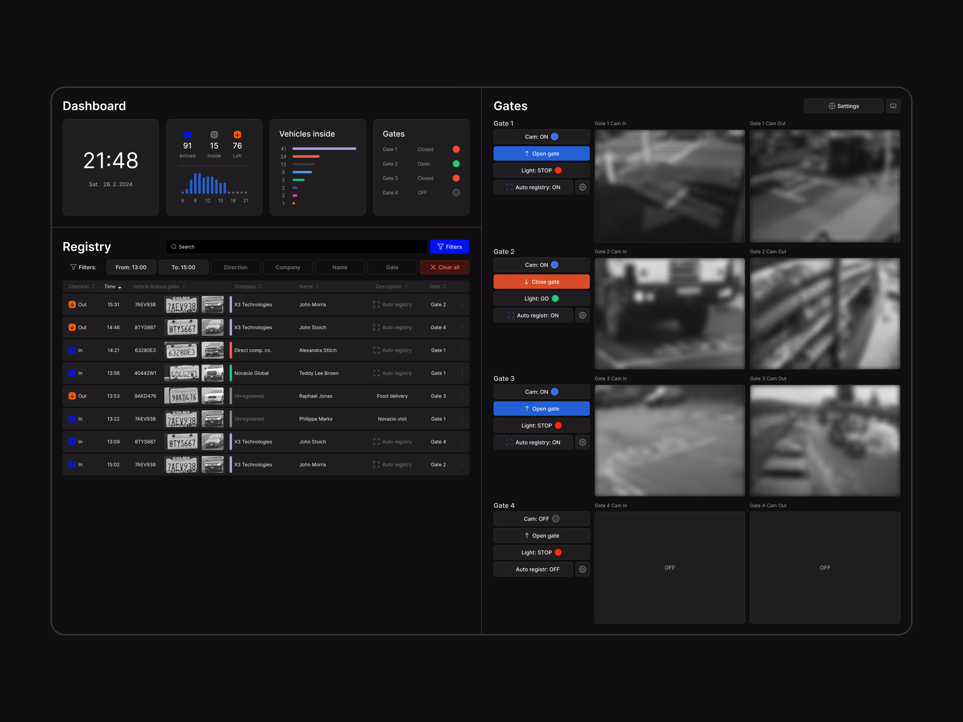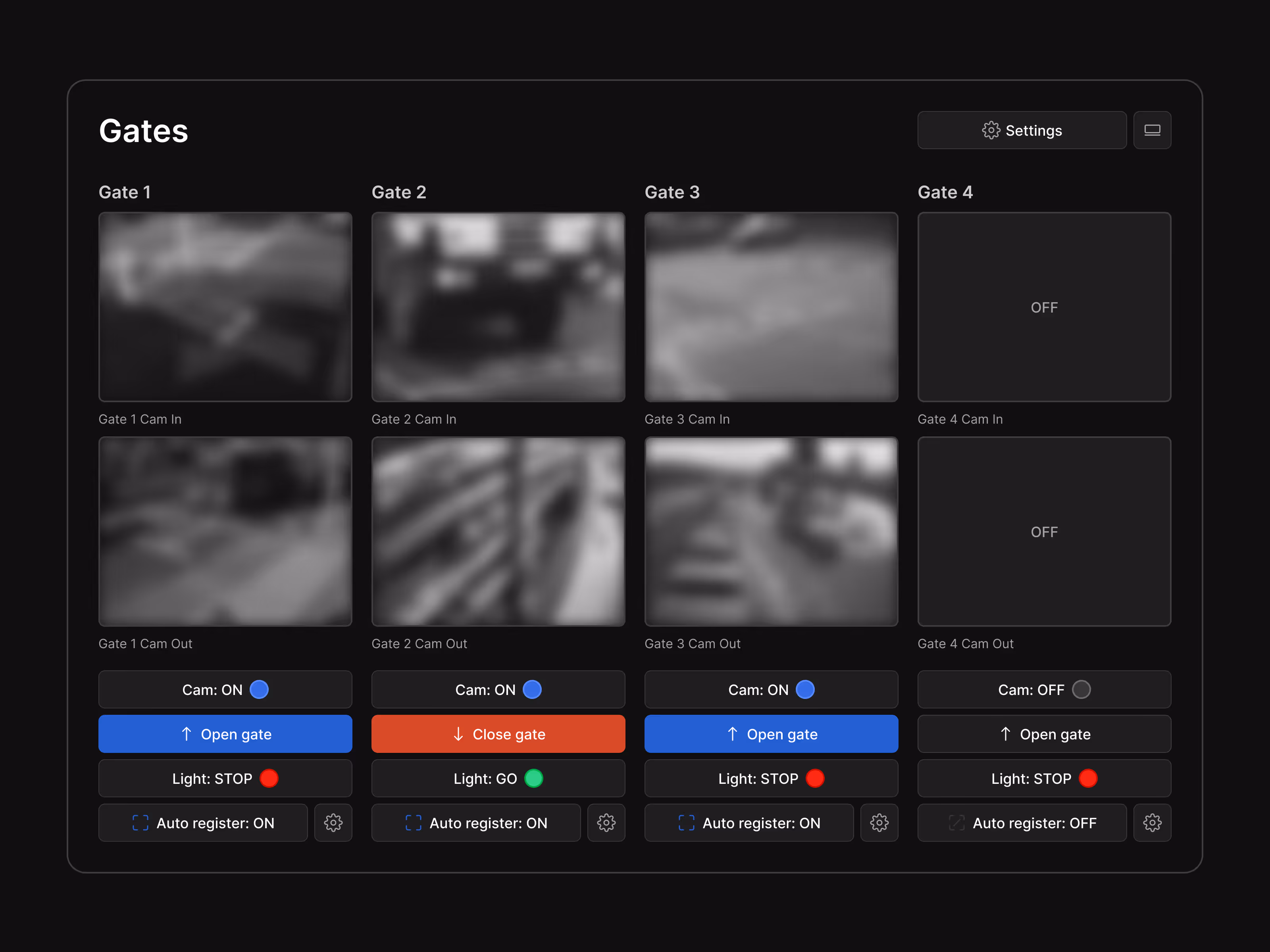 In addition to the cameras, there are several lifting gates in the area and it was necessary to design a controls for them. It started with an initial design of the layout.